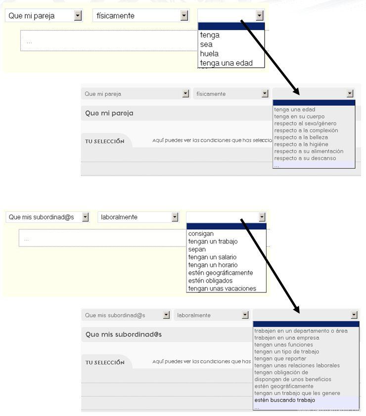 Como se puede observar en estos ejemplos, el usuario no necesita profundizar dentro del verbo para comprender mejor la opción que está buscando.